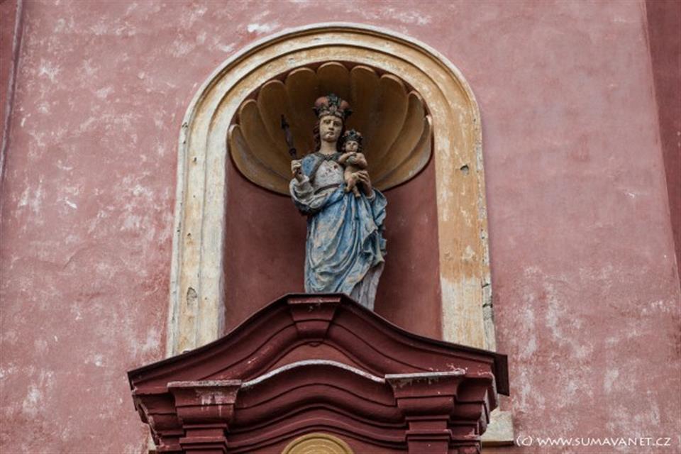 Přirozeným centrem kraje pod horou Žďánovem v Pošumaví je Strašín s poutním a zároveň farním kostelem Narození Panny Marie. Trojlodní kostel s červeně natřenou fasádou a třemi cibulovými báněmi je položen na návrší mimo ves a tak je vidět už zdaleka ze všech stran. Vznik původní kostelní stavby, ze které se dochovala pouze hranolová třípatrová románská věž v ose západního průčelí, je kladen do první poloviny 13.století.