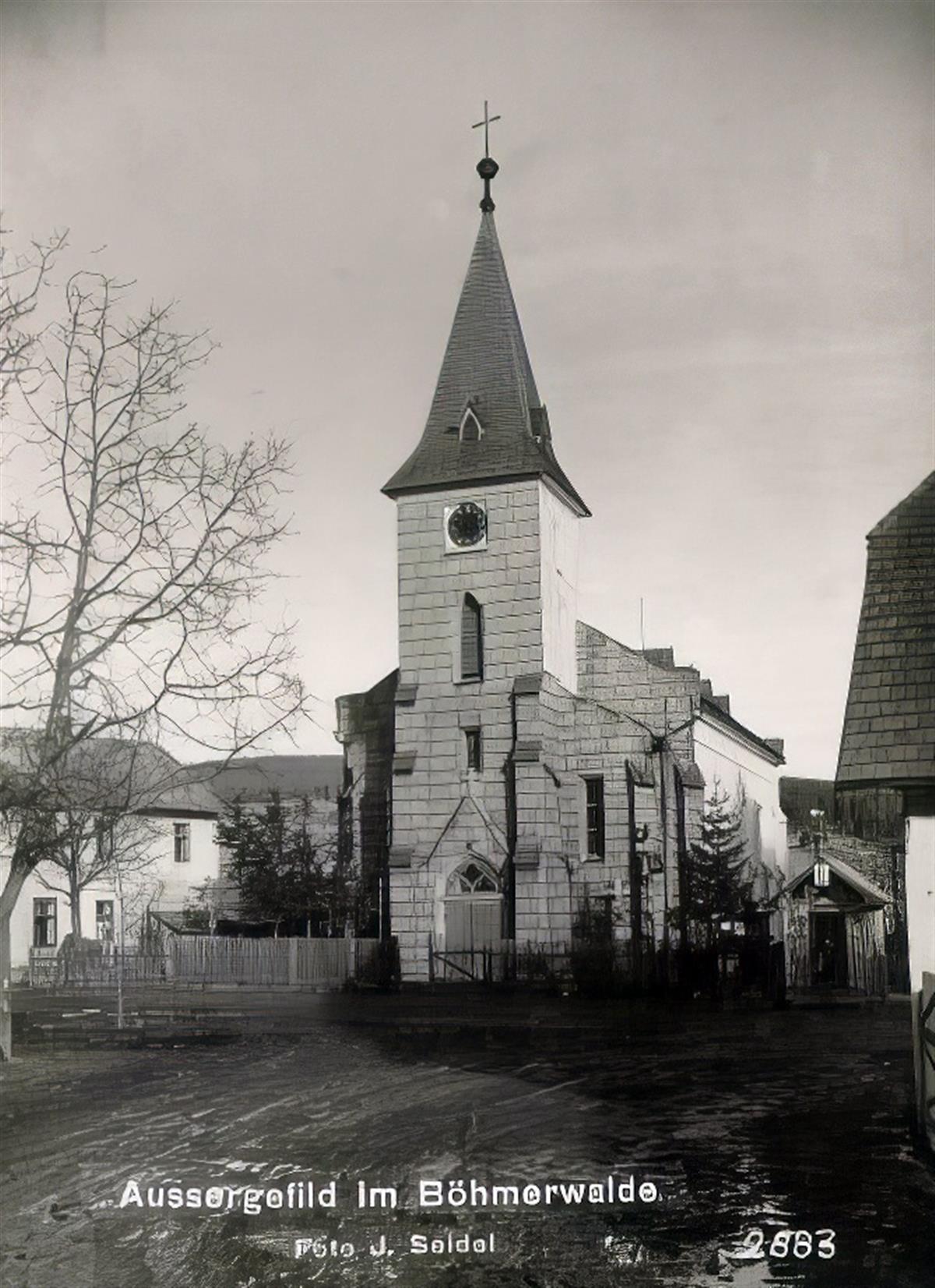 V roce 1765 vyhověla pražská arcibiskupská konsistoř žádosti kvildských věřících a poskytla svolení ke stavbě kostela včetně hřbitova. Dřevěný kostel, jehož stěny byly pokryty šindelem, byl zasvěcen památce Nalezení těla sv. Štěpána.