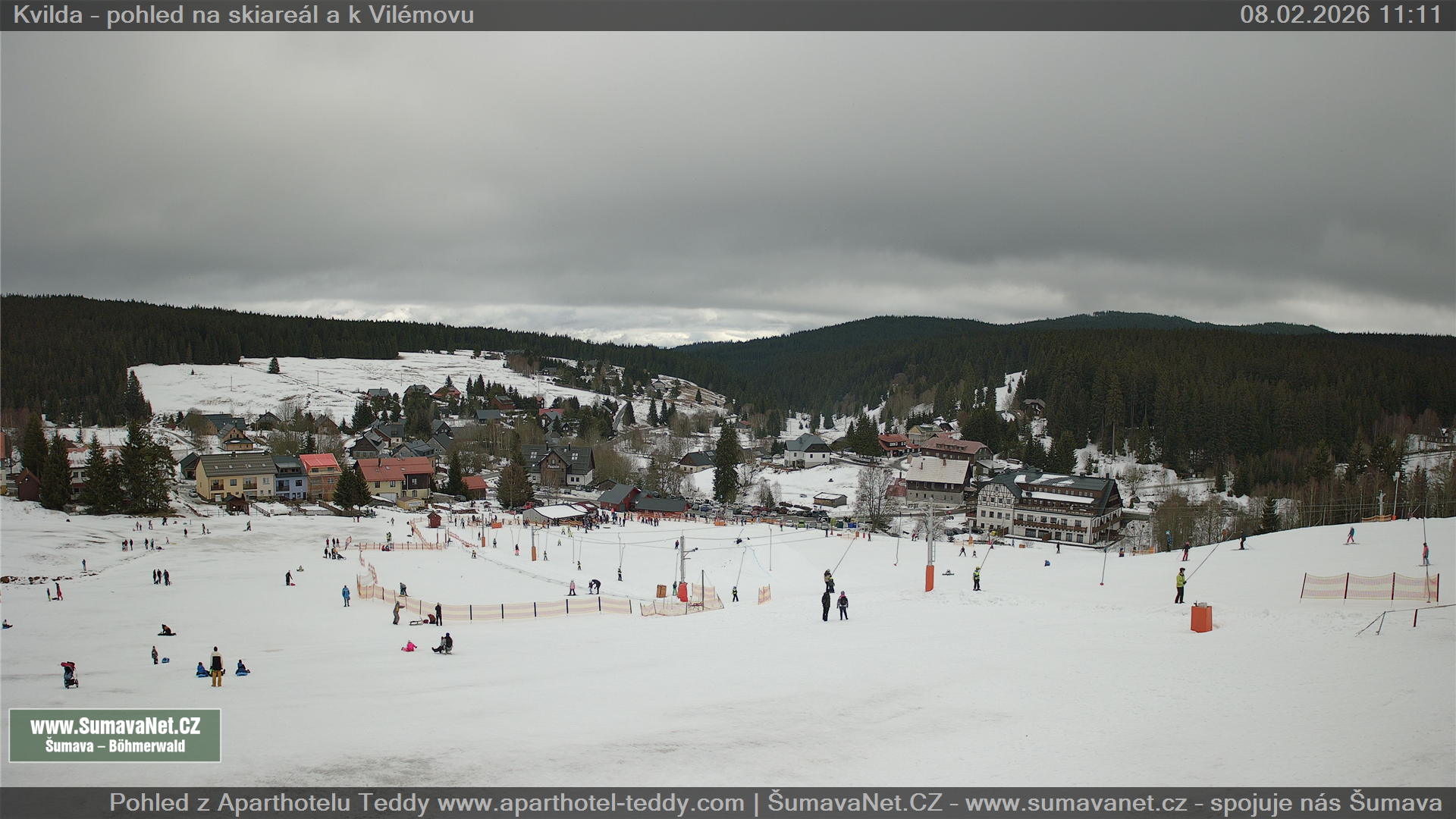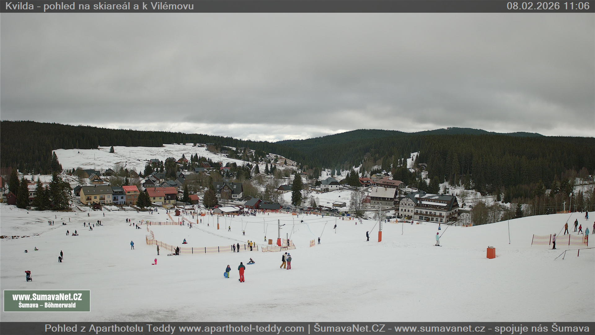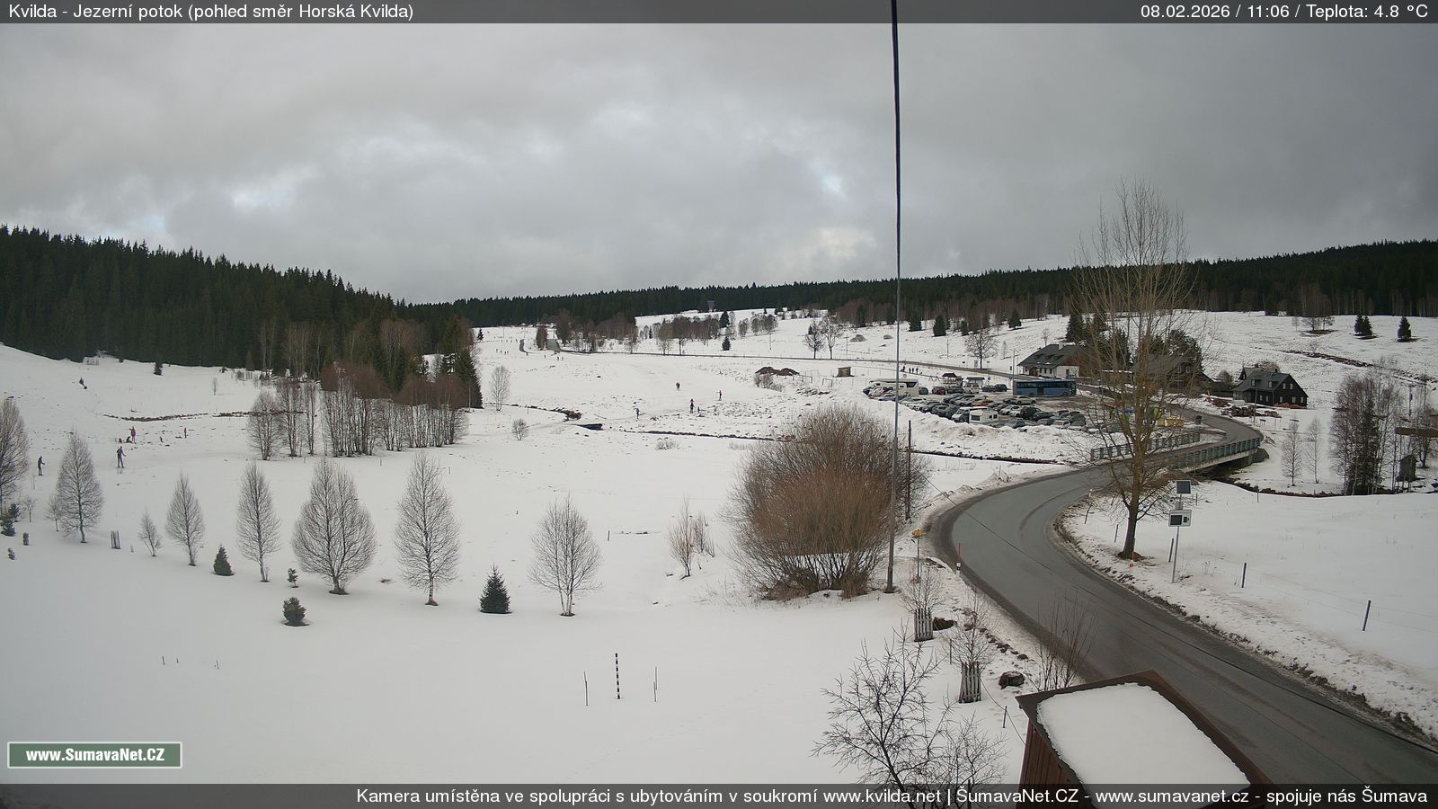 Page contentWebCamsKvildaBig Image08.02.2026 8:19:43Select time: Archive: Today 1 day 2 days Week Month 100 days Year Provozováno Informačním serverem ŠumavaNet.CZ ŠumavaNet.CZ & Aparthotelem TeddyKvilda - Jezerní potokBig Image08.02.2026 8:18:09Select time: Archive: Today 1 day 2 days Week Month 100 days Year Kvilda - centrum08.02.2026 8:20:00BučinaBig Image08.02.2026 8:14:07Select time: Archive: Today 1 day 2 days Week Month 100 days Year Další webkamery Tyto dvě kamery Vám přinášíme ve spolupráci se sumava.eu Refresh page