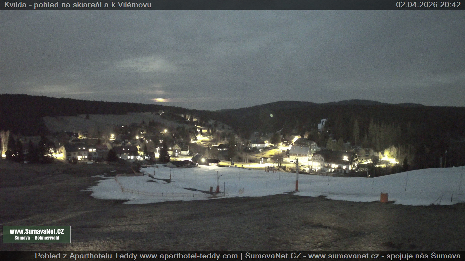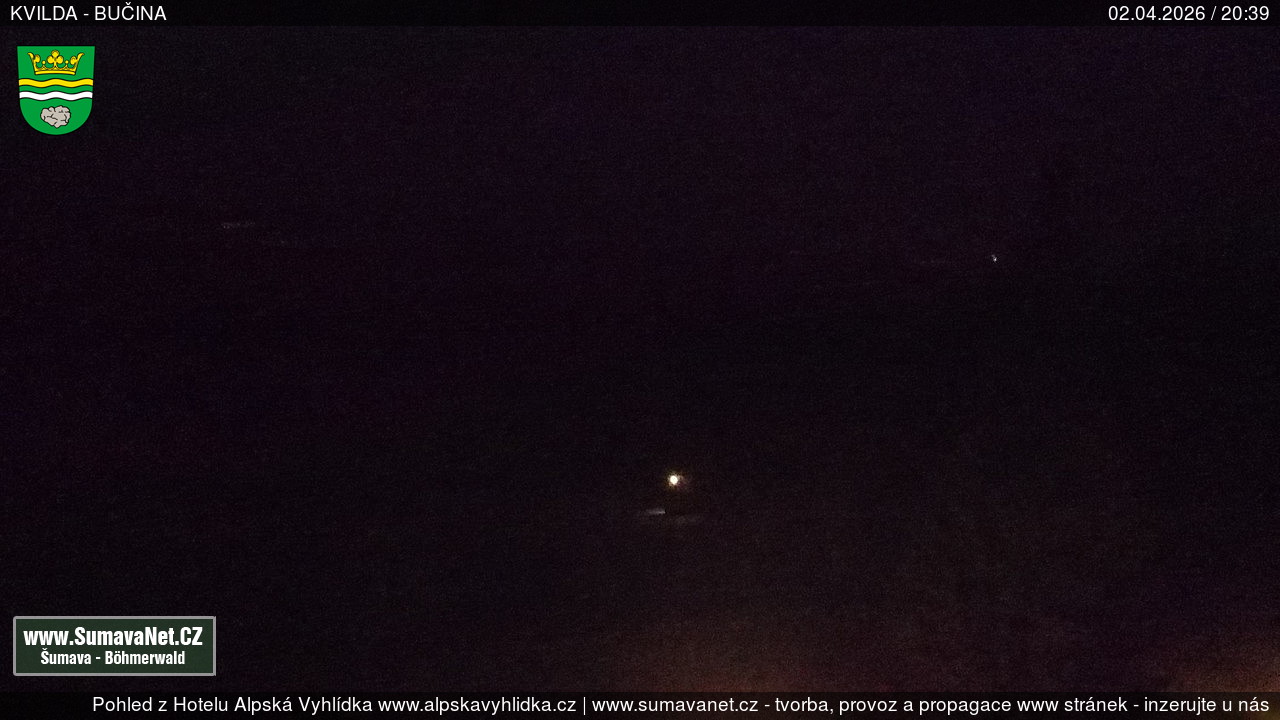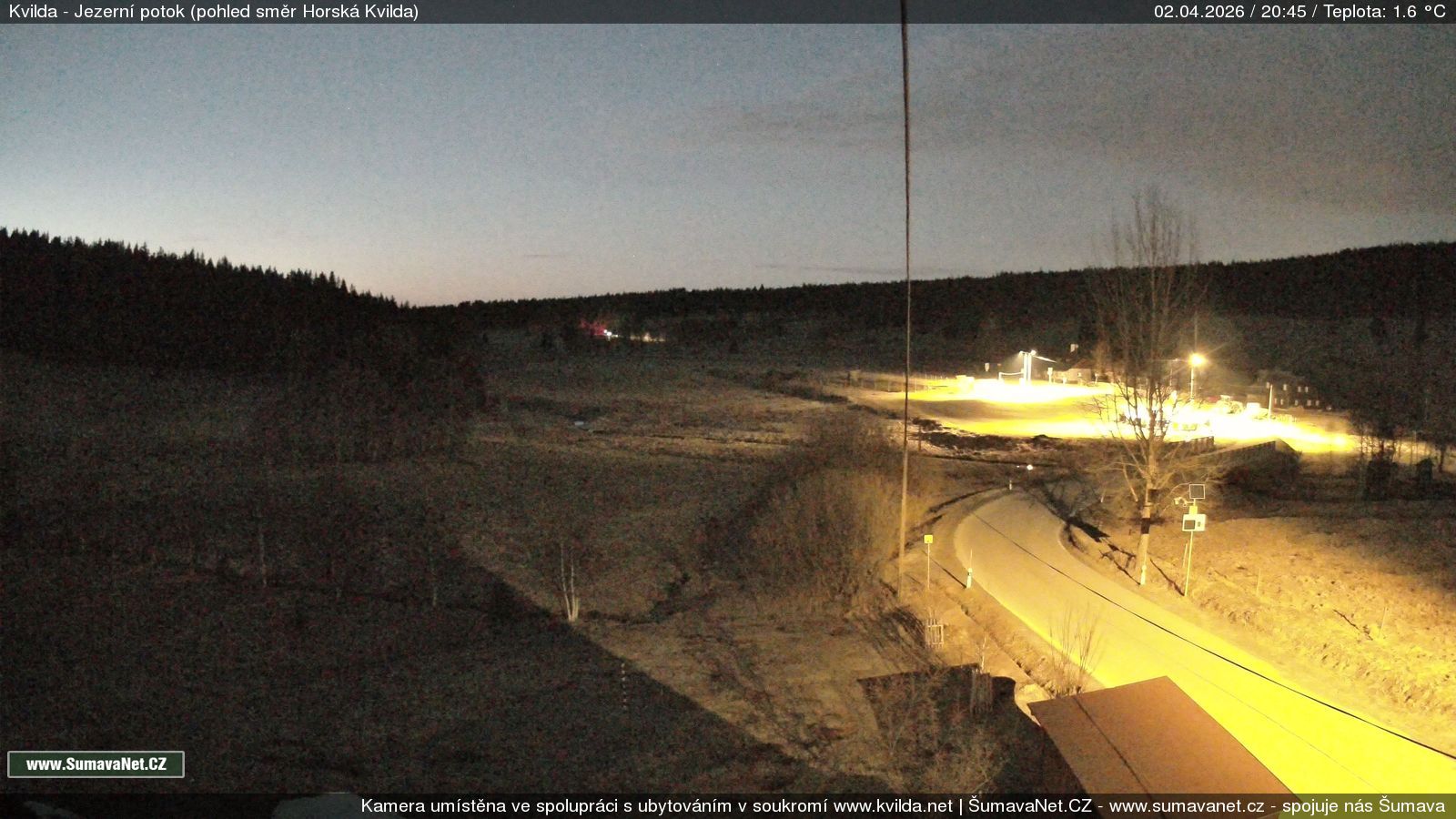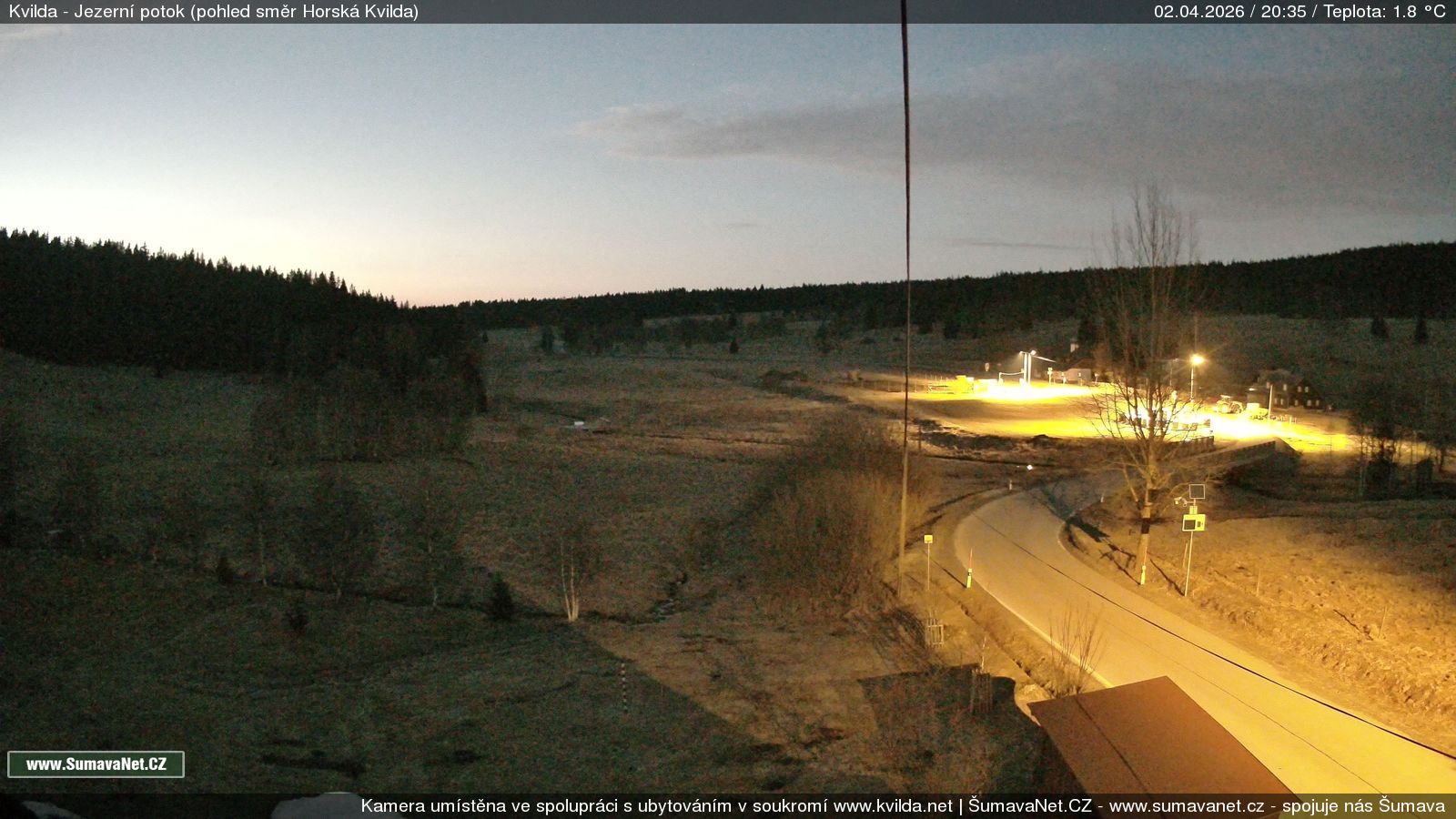 Page contentWebCamsKvildaBig Image02.04.2026 19:07:37Select time: Archive: Today 1 day 2 days Week Month 100 days Year Provozováno Informačním serverem ŠumavaNet.CZ ŠumavaNet.CZ & Aparthotelem TeddyKvilda - Jezerní potokBig Image02.04.2026 19:07:12Select time: Archive: Today 1 day 2 days Week Month 100 days Year Kvilda - centrum02.04.2026 19:08:15BučinaBig Image02.04.2026 19:02:11Select time: Archive: Today 1 day 2 days Week Month 100 days Year Další webkamery Tyto dvě kamery Vám přinášíme ve spolupráci se sumava.eu Refresh page