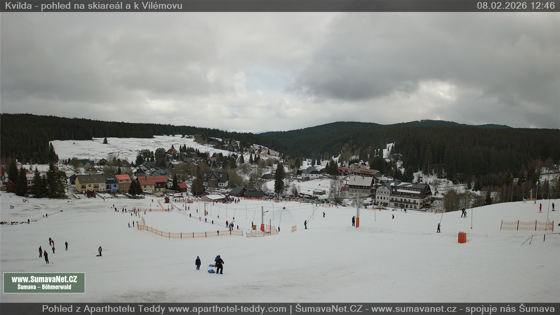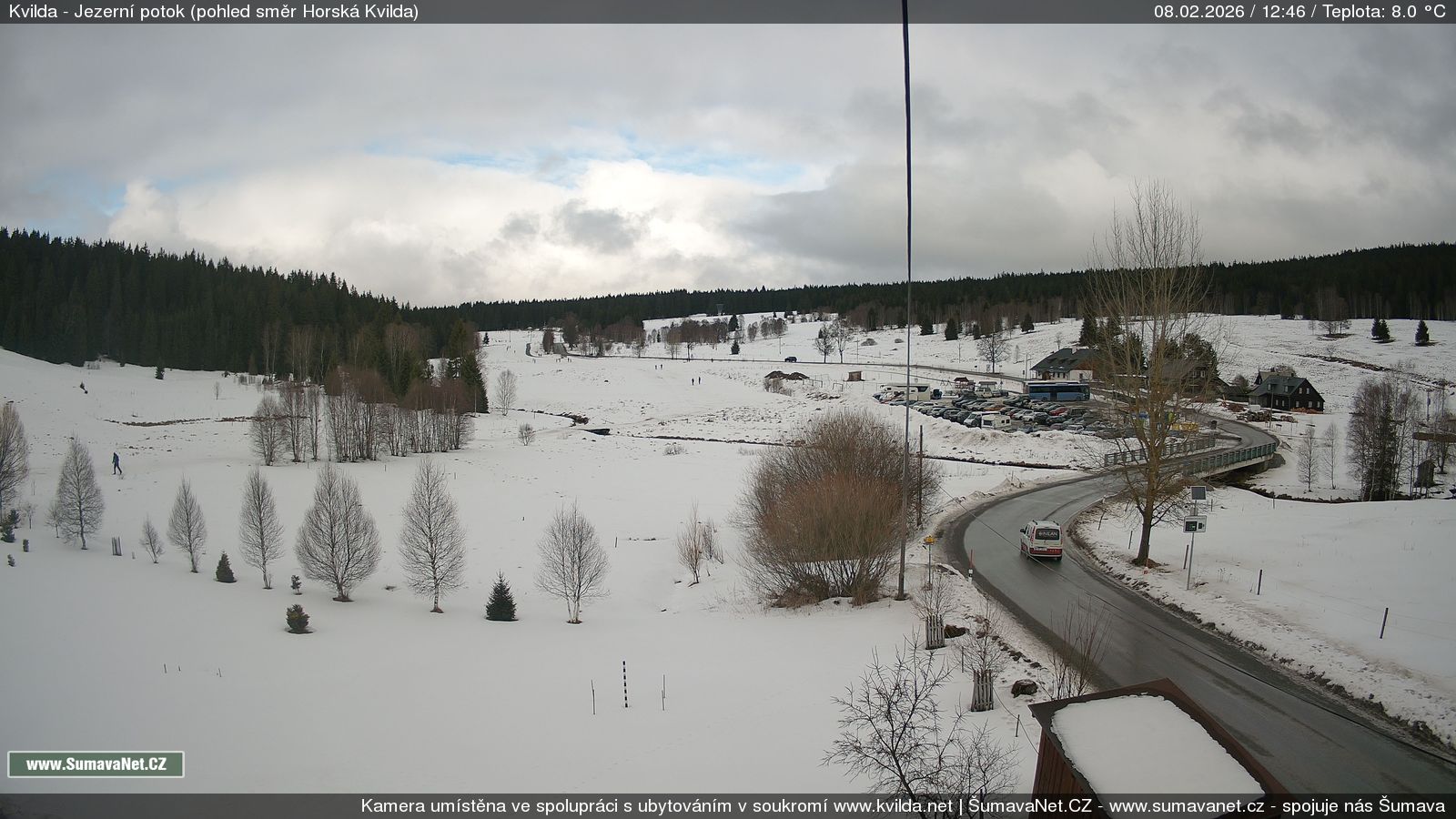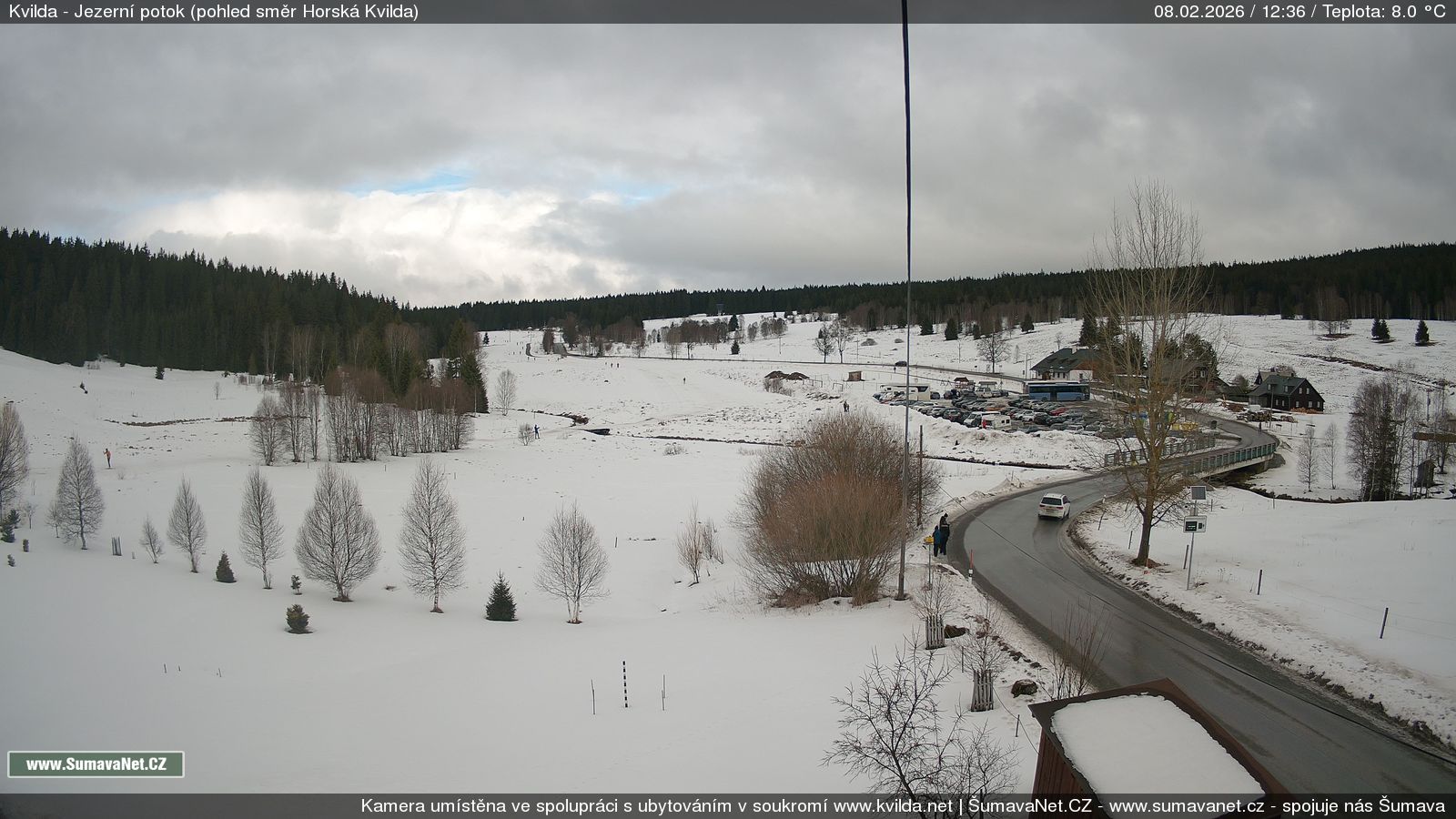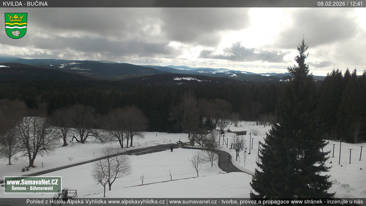 Page contentWebCamsKvildaBig Image08.02.2026 11:17:47Select time: Archive: Today 1 day 2 days Week Month 100 days Year Provozováno Informačním serverem ŠumavaNet.CZ ŠumavaNet.CZ & Aparthotelem TeddyKvilda - Jezerní potokBig Image08.02.2026 11:18:08Select time: Archive: Today 1 day 2 days Week Month 100 days Year Kvilda - centrum08.02.2026 11:18:00BučinaBig Image08.02.2026 11:14:07Select time: Archive: Today 1 day 2 days Week Month 100 days Year Další webkamery Tyto dvě kamery Vám přinášíme ve spolupráci se sumava.eu Refresh page