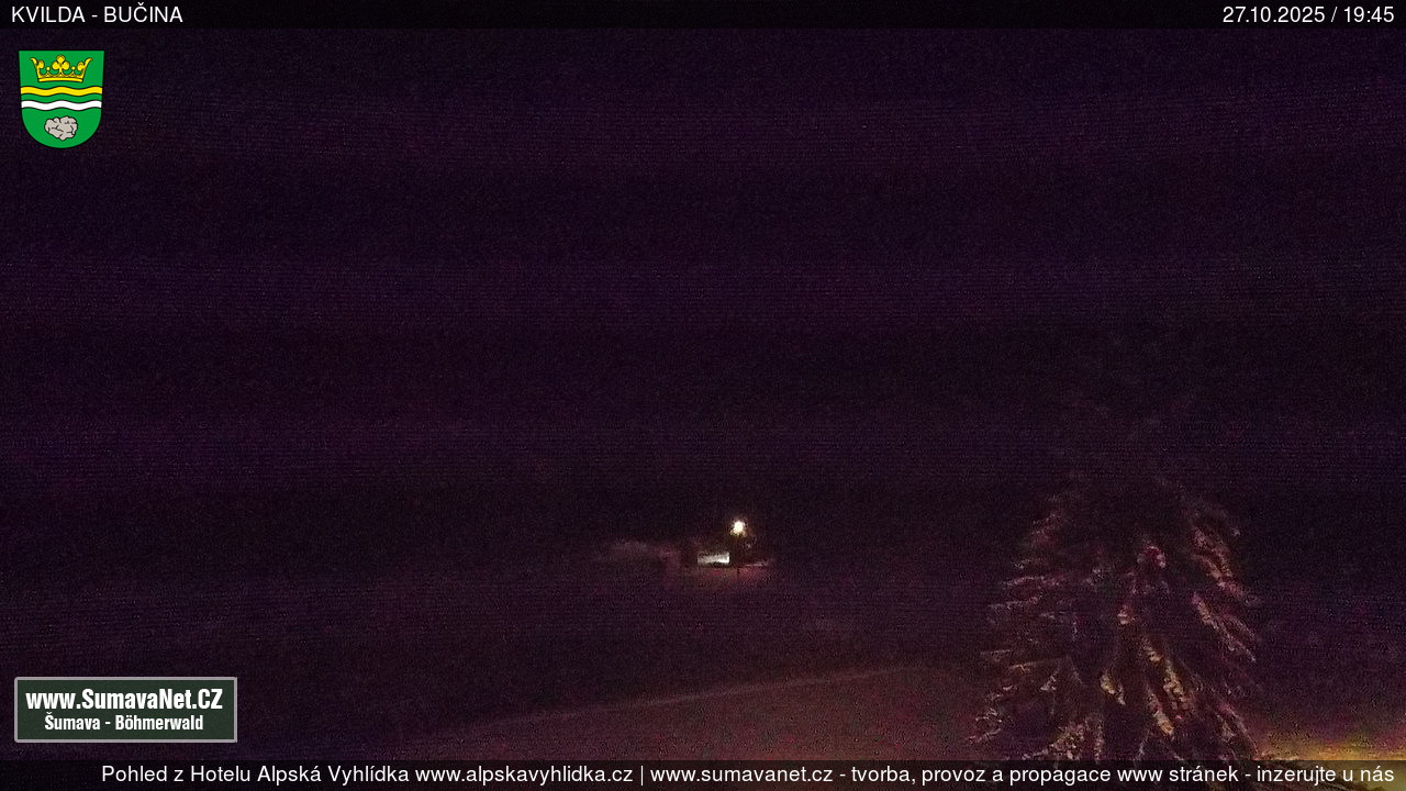 Page contentWebCamsKvildaBig Image27.10.2025 12:49:31Select time: Archive: Today 1 day 2 days Week Month 100 days Year Provozováno Informačním serverem ŠumavaNet.CZ ŠumavaNet.CZ & Aparthotelem TeddyKvilda - Jezerní potokBig Image24.10.2025 7:05:50Select time: Archive: Today 1 day 2 days Week Month 100 days Year Kvilda - centrum27.10.2025 12:48:24BučinaBig Image27.10.2025 12:48:07Select time: Archive: Today 1 day 2 days Week Month 100 days Year Další webkamery Tyto dvě kamery Vám přinášíme ve spolupráci se sumava.eu Refresh page